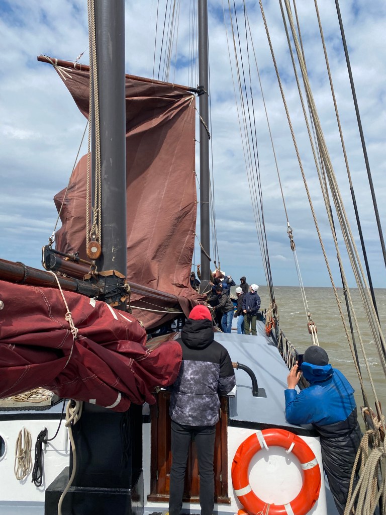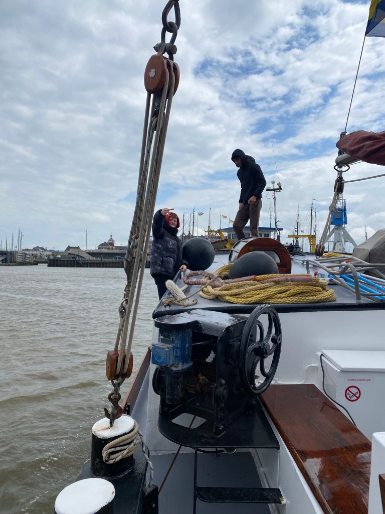 Achteraf zijn we dan vertrokken met de boot van Harlingen naar Terschelingen. We zijn eerst motorisch de haven uitgevaard en dan hebben we de windkracht gebruikt. Het was mooi weer maar wel bewolkt ook op de zee waren er redelijk veel golven waaraan gevolg dat ik zeeziek werd.